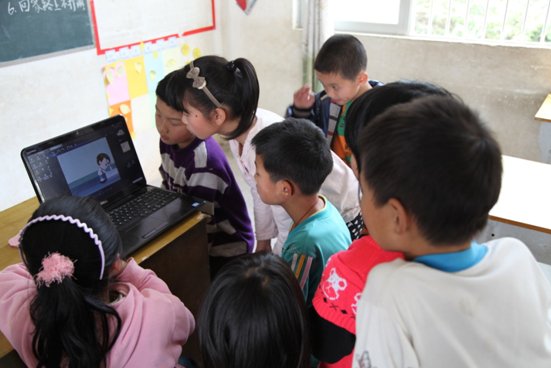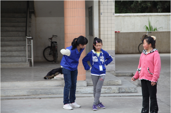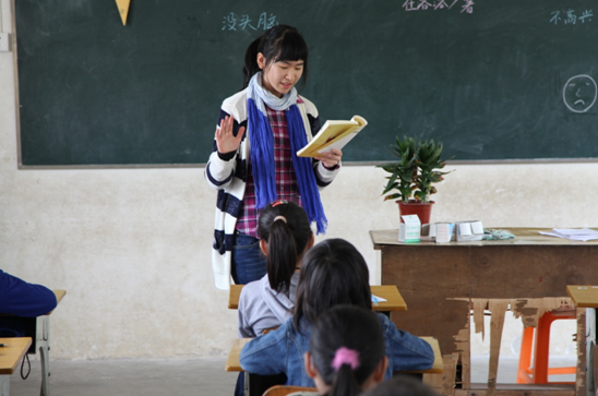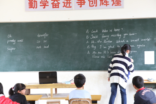 这是这在给学生上C类课程的现场,C类课程也就是兴趣课。我操起老本行,异常热情与激动。农村小学的孩子们对英语不怎么感兴趣,我们班只有惨淡的八个学生,不过在意料之内,也算是小班教学吧。我翻阅所有的照片,找不到一张面部表情自然自在的,回想起来,这几堂课对我真是不小的挑战。