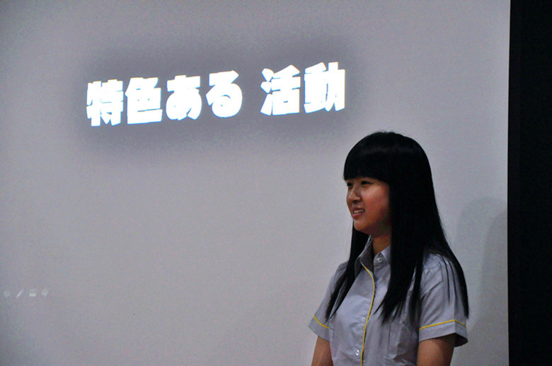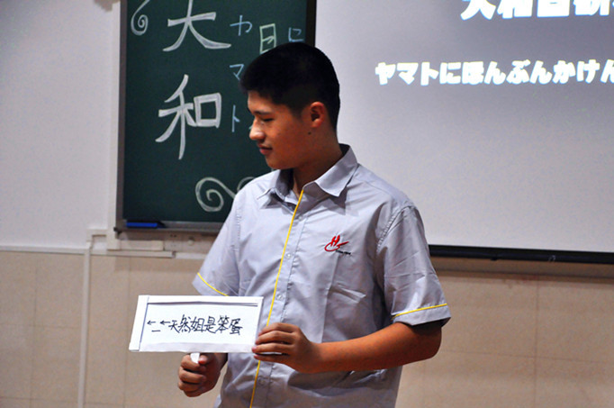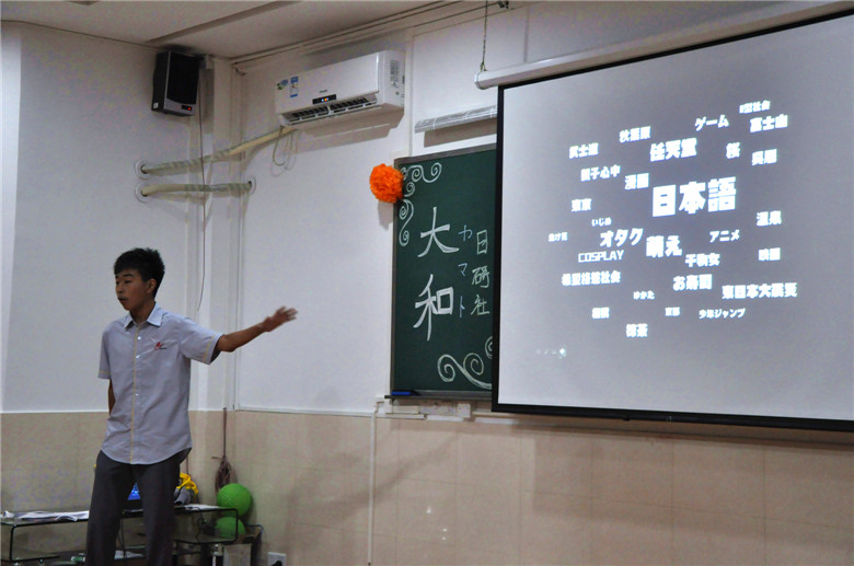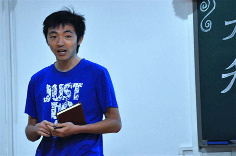 苏安邦为我们献上了非常精彩的演讲。首先,他抛出了三十个关键词,大多是我们熟悉的日本的文化符号,比如“武士道”、“萌”、“京都”等等,而其中还有今晚最重要的关键词:日语,一起学日语,是日研社创立者们最初的愿望。在这次介绍会,我们尝试了一次轻松简单的日语教学——卡哇伊的N种说法。苏安邦选取了大家最熟悉的日语单词“可爱”,根据日语发音的特征,教大家一边用手打拍子一边学习发音,气氛随之热闹了起来。苏安邦还用简单的方式让大家立即理解了几种卡哇伊说法的使用场合。