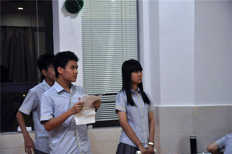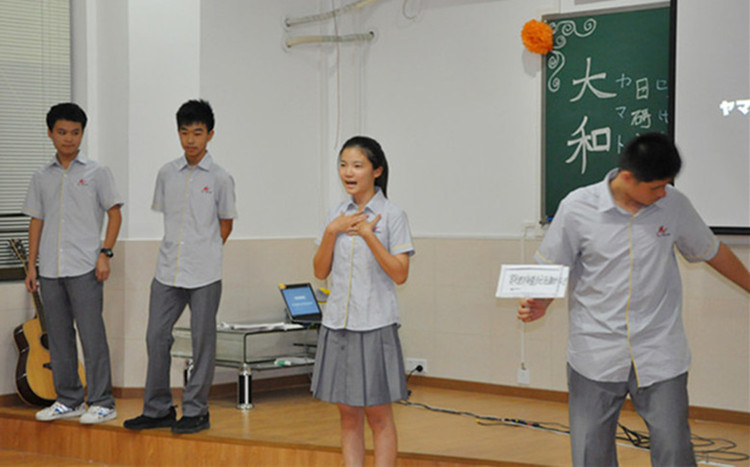 还没有从何广杰的表演中缓过神来,苏安邦又抛出了日本文化关键词。关键词一:音乐。九位日研社成员上台,在没学过日语并只练了三四次的情况下,整齐地完成了《千本樱》的合唱。关键词二:动漫。动漫可能是大部分人了解日本的主要途径,谈到日本,“动漫”是一个无法忽略的关键词。我们准备了动漫配音表演——《男子高中生的日常》段落,有趣的台词、明显的冲突、好玩的酱油角色,诙谐生动的配音表演惹得现场笑声阵阵,何广杰、苏安邦、张天阳、张溥轩四位配音演员表情严肃而,声音却时而急促,时而梦幻,时而热情,将观众们引入他们神奇的动漫世界。