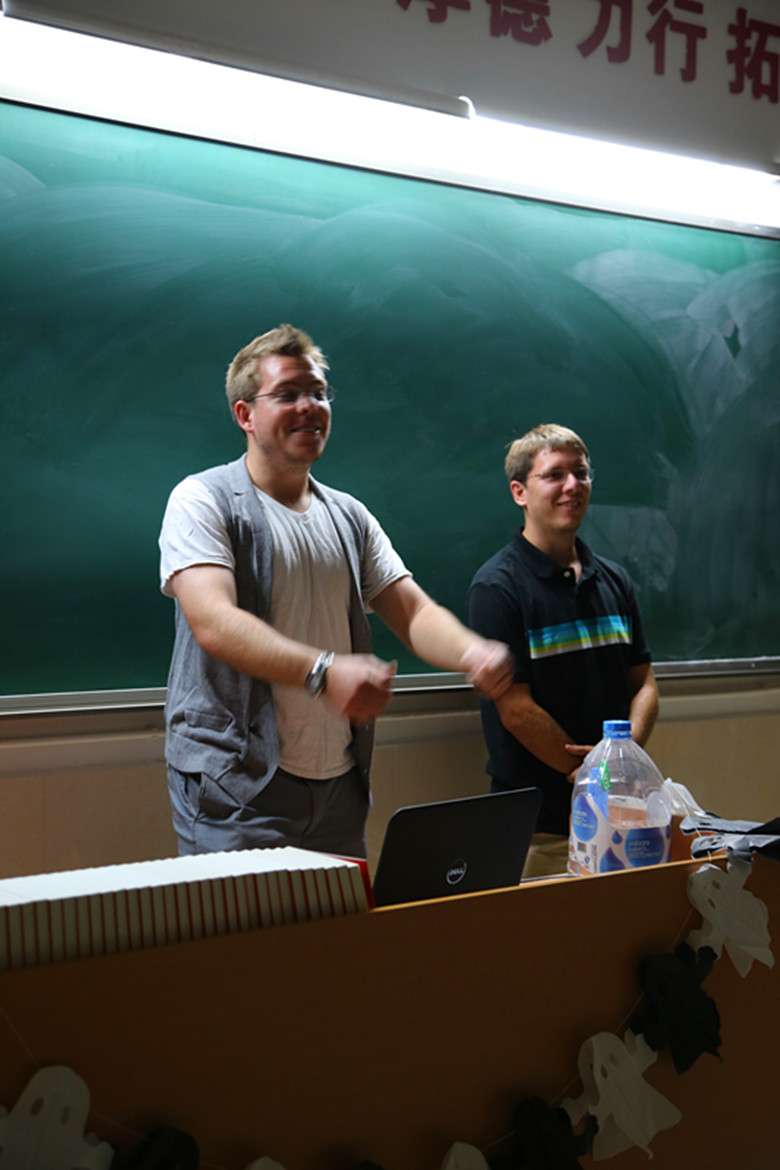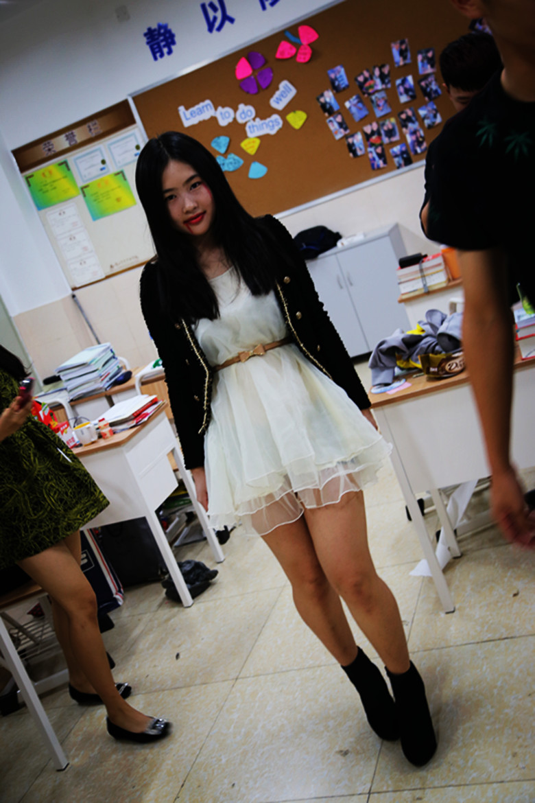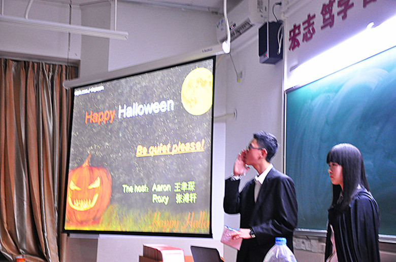 随着大家陆续登场,木乃伊、恶魔、女鬼等角色让人眼前一亮,吸引了许多奇异的眼光。再一进教室,悬挂的蜘蛛,张贴的黑白骷髅头,飘起的“带血”轻纱都随处可见,增添了恐怖的气氛。
