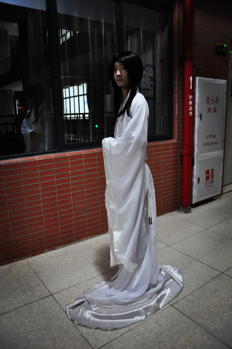 许杰: 鬼屋里的长发白衣就是许杰!扮鬼追杀游客太累了,娱乐游客,还要被游客殴打,此刻他有点忧郁。