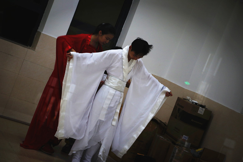 李天然和许杰: 鬼屋里的红衣和白衣就要装扮好啦