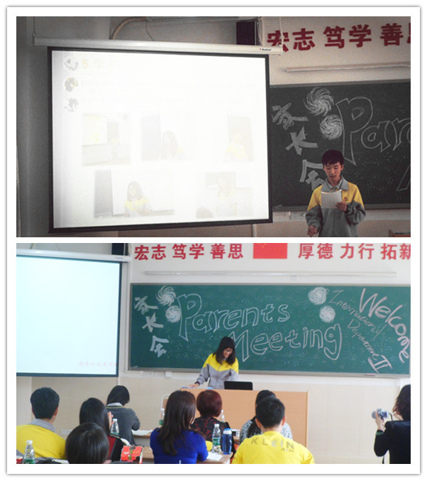 随着主持人讲话的开始,这次家长会也正式拉开了帷幕。为了更好地体现“改变从这里开始”这一主题,本次家长会在上次的基础上做了大胆创新——学生代替老师,成为家长会的主角。这样做,不仅打破了传统的家长会模式,更重要的是,能够真正个性化地为家长提供学生的学习、生活和心理状态,以及学生对自己和对未来的理解。本次家长会的主要流程有学生个人主页介绍,学生活动介绍,学生学习分享,班主任发言及校长讲话等。通过各个环节的展示,家长们能够进一步的了解同学们,同时也可以知道同学们在就读国际部之后的进步。