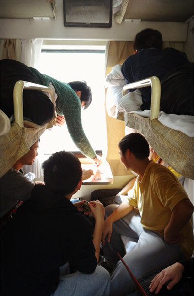 20小时的长途火车是新奇体验,和上铺的兄弟们一起打牌,看电影,分一袋薯片,是难得的好时光。