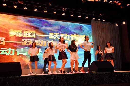 国际高一的学弟学妹们以劲歌炫舞点燃现场气氛,欢呼、尖叫因为舞台上活力迸发的青春舞步而不断沸腾。