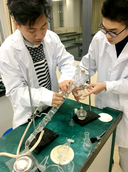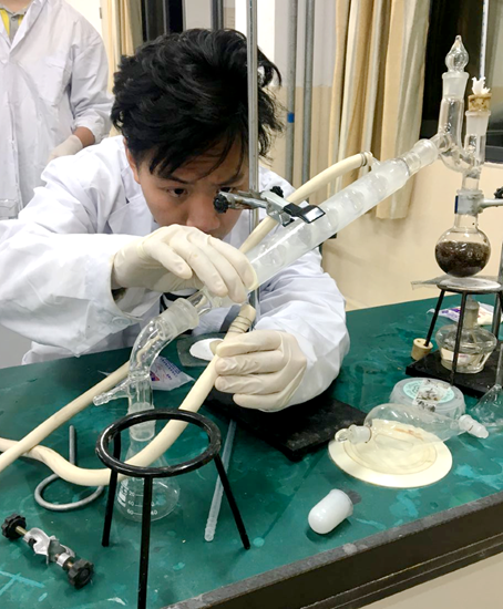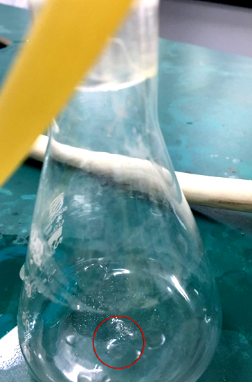 不得不说,第2小分队的实验是最稳定、最成功的,蒸馏半个小时即收集到第一滴馏出液,第2组成员激动惊呼这是他们的‘First Blood’。