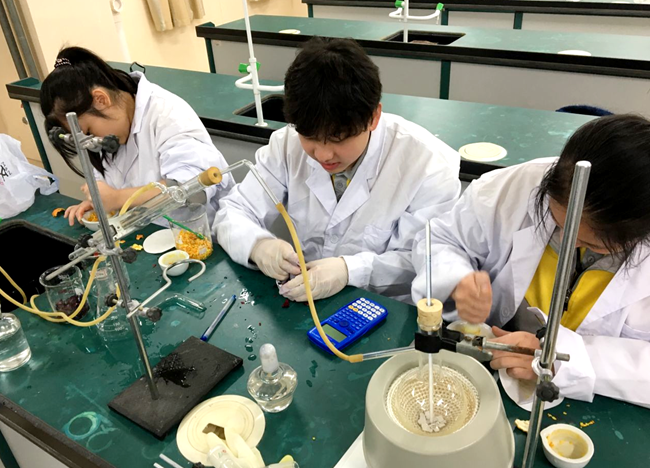 经过全面的前期准备,国际部终于正式开展“香水提取”的实验探究,其中每个实验都是由学生自己设计的。