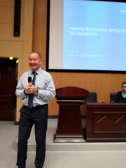 据了解,本次到访开讲的嘉宾是英国南安普顿大学的高级招生官Andy Malicki,作为国际名校的资深招生专家,Mr. Malicki在英国校园文化、大学招生取向、学生面试技巧等拥有深度的见解与独特的心得。