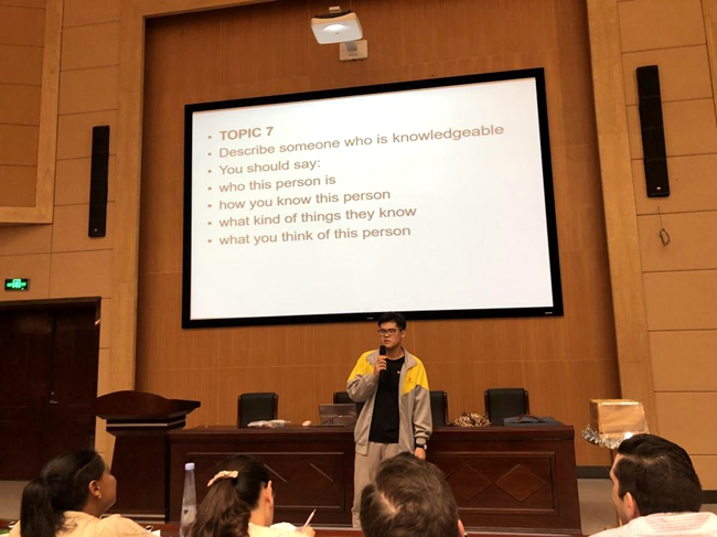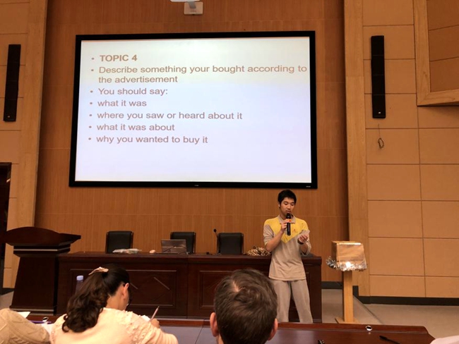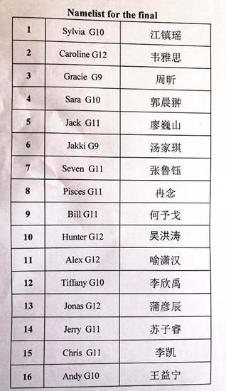 英语组MR.TOM以及外教组MS.CHEN分别祝贺通过为期两周的海选激烈角逐,并成功晋级复赛的优秀选手,号召现场学生以参与比赛的选手们为榜样,学习他们“勇于开口,锻炼自我,不惧挑战”的精神,方能全面摆脱“哑巴英语”的障碍。