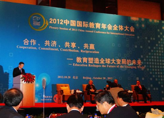 10月19日至21日,2012中国国际教育年会在京隆重举行。此次年会由中国国际交流协会主办,以“合作、共济、共享、共赢——教育塑造全球大变局的未来”为主题,由“中国国际教育论坛”、“中国国际教育展”和“中外院校合作项目洽谈会”三部分构成。我校国际部主管彭海琼老师应邀参加了此次年会。