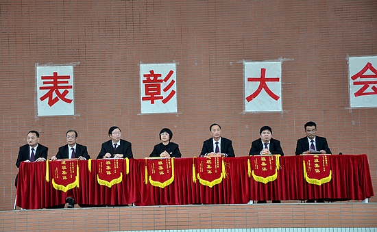 2012年2月23日下午,我校2011—2012学年度第一学期学生表彰大会在校田径场隆重举行。学校领导执行校长范小星,副校长陈明星、副校长江楚桥、德育处范小梁主任、教务处蒋晓明主任、教研处孙传华主任以及全校师生900多人参加了表彰大会。表彰会由德育处副主任杨文化主持。 回顾上一学期,我校师生齐心协力,在学生“四个好习惯”的养成、培优转差分层教学、市区各种竞赛、全区期末统考,都取得了优异成绩,向社会展现了我校的德育成果、教学教研质量与黄广人全面素质,一大批开拓进取的先进班级崭露头角;一大批品学兼优的优秀学子脱颖而出。这次受表彰有7个先进班集体,22位管理之星,108位全面发展之星,20位优秀学生会干部,118位学习之星,66位学习进步之星,22位德育进步之星,125位礼仪、舞蹈等之星,30位优秀寝室长,42位生活之星,6位优秀广播员,5位国旗班优秀队员。他们的出色表现和突出成绩为广州市黄广中学广州市黄广中学化增添了一抹绚丽的色彩。 副校长陈明星宣读了《关于对2011—2012学年第一学期先进班集体、管理之星、全面发展之星、优秀学生会干部、学习之星、进步之星、优秀寝室长、生活之星等给予表彰的决定》,德育处范主任宣读了先进班集体和学生个人获奖名单。 获奖学生代表宋嘉玲为同学们提出了几点建议、黄心怡在会上介绍了自己的学习方法、心得体会及班级班风建设所取得的成绩。他们认为,在学习中,要树立正确的目标,合理安排时间,一步步实现目标,要根据实际情况参加课外活动对自己的全面发展非常重要;在工作中,要脚踏实地,具有奉献精神和不断学习的精神,努力为同学服务,做好学习的表率;在班级建设中,需要全体同学的共同努力,树立集体意识,建设团结和谐奋发向上的班级体。 接着,副校长江楚桥发表了激情昂扬的讲话。他代表学校行政向受到表彰的先进集体和个人表示热烈的祝贺,向付出辛勤劳动的广大教师表示诚挚的感谢。江校长向全校师生提出两个希望:一、德育为先,育人为首;二、学业为重,能力为本。并要求同学们以先进为榜样,在春天播种希望,收获喜悦。 最后,学校领导给先进班集体和个人颁发了锦旗、奖状和奖品,大会在喜庆、热烈、激动的气氛中落下帷幕。 荣誉属于过去,未来掌握在自己手中,需要我们每一个人去开创。本次表彰大会是一次激励的大会、鼓劲的大会、开拓创新的大会。希望全体“黄广学子”,在“宽而有度,和而不同”、“博观约取,厚积薄发”的管理理念与教学理念的激励下,不断增强自信心,提高自律意识,自立自强,勇于超越创新,提高各方面能力和综合素质,众志成城,勇于开拓,再创辉煌!