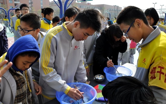 南国的冬季,乍寒还暖,我们广州市黄广中学机一片。 为欢庆圣诞、迎接新年,更是为了增进学生课外知识,培养学生综合能力,陶冶学生情操,促进学生全面健康成长,2011年12月24日,我校成功举办了“庆圣诞迎新年”游园活动。 清晨,各个班级的游戏负责人早早地来到篮球场,布置游戏场地及活动道具。他们一丝不苟的认真态度,给人留下一种“我的活动我做主”的印象。 上午十点,当温暖的阳光洒满校园的时候,伴随着“Christmas”欢乐音乐的响起,“庆圣诞迎新年”游园活动正式开始。各个班级游园项目,同一时间向全体师生开放。顿时,学校的篮球场上充满了欢声笑语。 每一项游戏的设计都充分体现了同学们的创意和智慧,每一个游戏规则的制定、宣传以及道具的准备,都凝聚了同学们的心血和汗水。猜电影、猜单词、夹珠子、贴鼻子、推杯子、三步击鼓、吹蜡烛、吹气王、2人3足、夹气球赛跑、趣味乒乓球、乾坤一掷、扔沙袋、扔网球、望远穿障碍等活动,让同学们在活动中感受游戏的快乐;“愤怒的小鸟”、“心心相印”、“一心二用”、“吸管嘴唇”、“指手画脚”、“PENG!气球”、“你是我的眼”等游戏,既神秘又充满创意,带给同学们无限趣味。 23项游戏都极具人气,有个人项目的,有合作项目的,时不时传来同学们的欢呼声和掌声。兑奖处的学生会成员们也忙得不亦乐乎,紧张且有序地为同学们进行兑奖工作。游园场地上还有一个可爱的圣诞老人,他背着一个装满糖果礼物袋,把糖果、欢乐与祝福洒向场上的同学。 两个多小时时间,同学们带着兴奋的心情,全员参与全情投入到活动中。