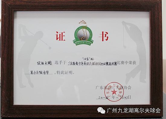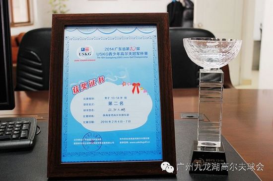 另外,在昨天刚刚结束的“广东省第十届USKG青少年高尔夫冠军杯赛”上,经过三轮激战,欧阳天鹏最终获得男子13-14岁组别的亚军。