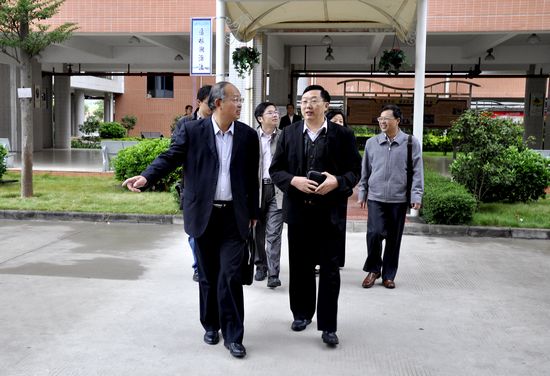 王实泉主席一行在江楚桥副校长的带领下,先后参观了学校教学区、学生宿舍等校园区域,学校优美的环境、科学的规划、齐全的设备设施得到王主席一行高度赞赏。