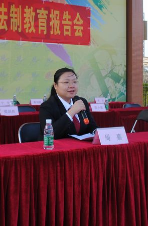 主管学生德育的江楚桥副校长对学校获指定为区“青少年模拟法庭法制教育基地”表示感谢,表示将以此为契机,强化学生守法依法的公民意识,推进校园周边治安管理,预防青少年违法犯罪,形成最优校风、最佳学风,使广州市黄广中学长心目中的安全校园、和谐家园、学习乐园。