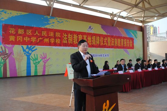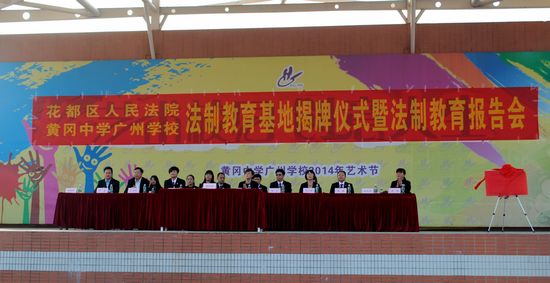 为进一步强化学生的懂法、依法、守法意识,将法制教育纳入学生日常教育体系,花都区人民法院与广州市黄广中学制教育基地”,双方于11月17日举行“法制教育基地”揭牌仪式,并现场为学生开展法制教育报告。