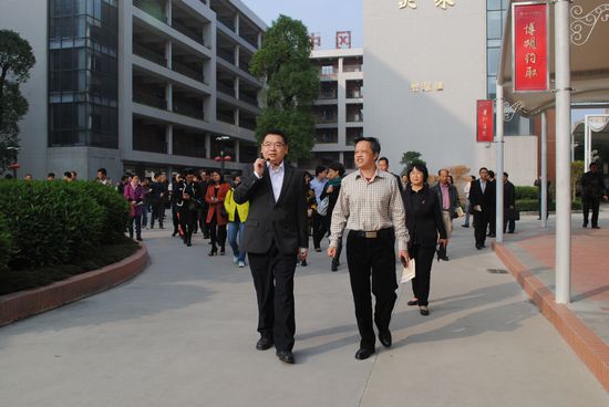 (2)广州市人社局专业技术人员管理处蔡琳处长、邓骥副处长、广州市教育局教育评估和教师继续发展指导中心徐文谦主任、黄华副主任等莅临我校调研考察,与我校领导就民办学校教师发展进行探讨。在花都区人社局何安云副局长、区教育局江杭章副书记等陪同调研。