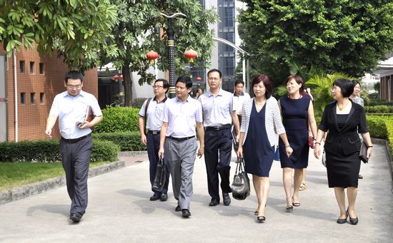 (2)黄广中学(总校)工会主席王实泉率七位同仁调研广州学校宿舍管理模式,学校优美的环境、齐全的设施、一流的宿舍管理得到总校调研组的高度赞赏。