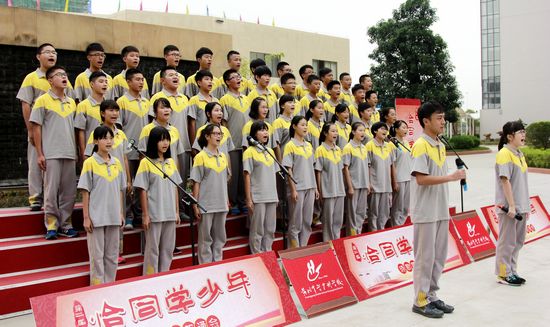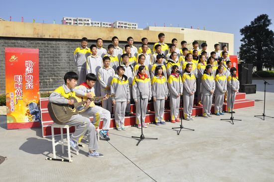 (4)学校2014年“歌声嘹亮,唱响黄广”歌唱器乐比赛在校园文化广场隆重举行,充满正能量的青春旋律在校园唱响。