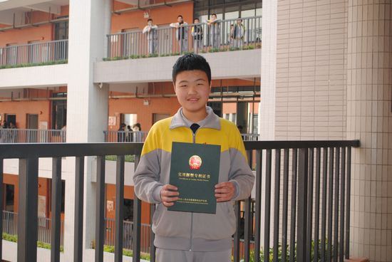 广州市黄广中学刘峰玮同学喜获“国家专利证书”