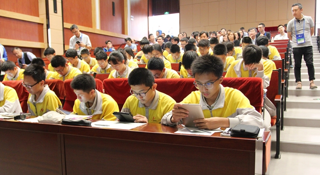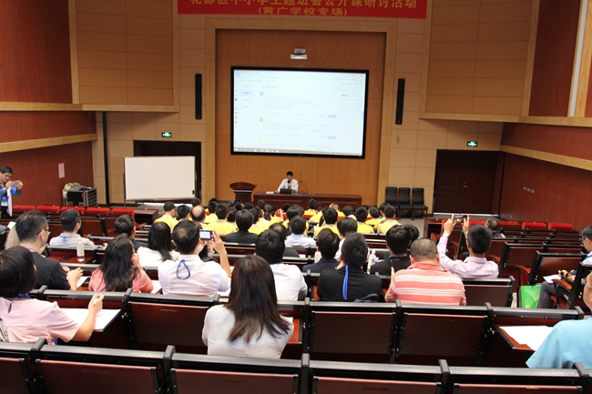 黄广集团智学中心曾主任为学生上了一堂“化学”智慧教学课程,同学们通过智慧教育系统学习,师生及时互动,各位来宾来到教室一起听课、了解智慧教育课程;随后,曾主任在会议室进一步介绍了智慧教育系统的流程和功能,就智慧教育系统的实践心得与各位来宾进行分享。