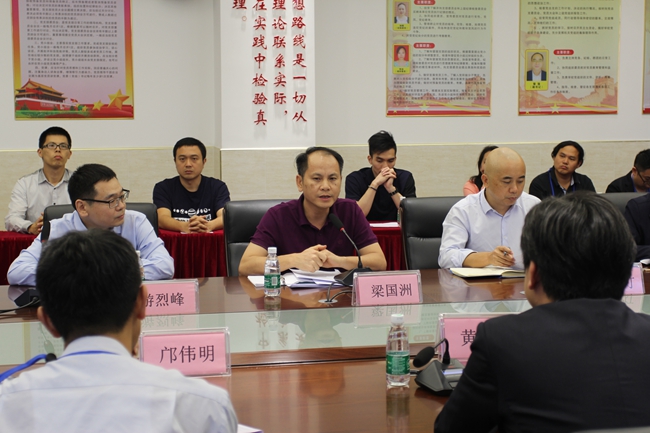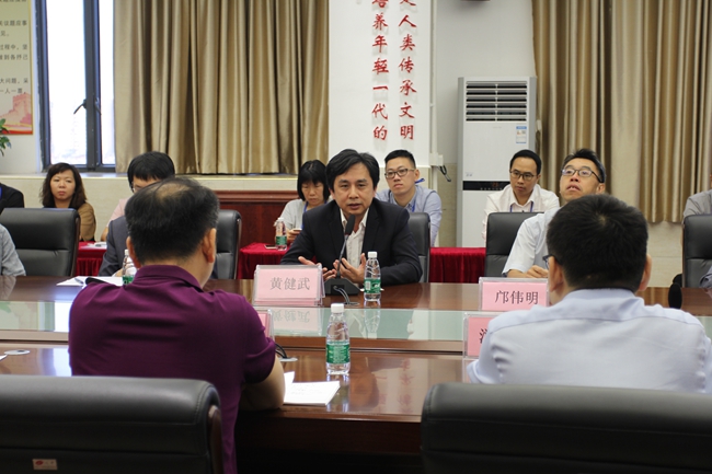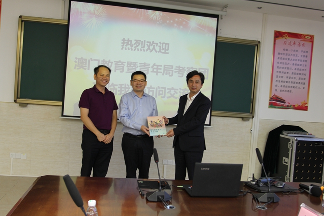 澳门教育暨青年局考察团围绕黄广智慧教育资源、教学流程、实践体验等主题,与梁国洲副局长、游烈峰校董等进行深入交流。