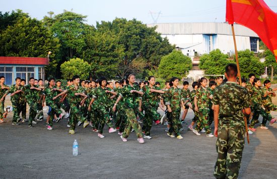 8月28日,是本次军训的第三天。经过前两天训练,同学们渐渐开始适应了令行禁止、迅速整齐的军营生活。在阵阵凉爽的晨风中,五星红旗冉冉升起。迎着朝阳,同学们在教官的指导下开始了新一天的训练。 除了重复着昨日学习的军姿、稍息、立正基本练习外,今天同学们在教官的带领下,开始学习正步走的动作要领,掌握正步走的技巧。教官把动作分解成若干步骤,每个动作都以身示范,“拳心朝内,脚尖绷直,抬头,挺胸,脚掌离地”一个个动作细节,同学们都认真地执行,他们用力的甩动臂膀,踏响脚步,努力走出正步走的气势。 经过这几天的训练,同学们一切行动听指挥,动作整齐,意志坚定,情绪激昂;任凭汗水一次次湿透衣衫,烈日肆虐,同学们依然精神抖擞,斗志昂扬,用实际行动向老师们证明自己已经成为了一名合格的小军人;同学们的脸上少了一份稚气,多了一份英气。他们精神状态饱满,信心坚定,“流血流汗不流泪,掉皮掉肉不掉队”的顽强精神在他们身上得到淋漓尽致的展现,他们将创造黄广人的辉煌!