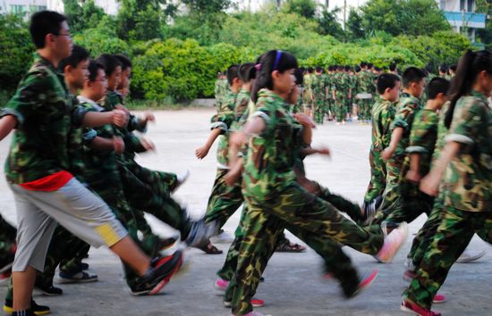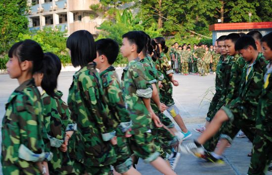 大概大自然也是想试探学子们顽强的意志品质,虽已入秋多日,天气并没有因为秋天的到来而凉爽少许,军训场上仍然是烈日炎炎,热浪滚滚。尽管如此,军训场上,800多名初一、高一新同学们仍以饱满的热情、顽强的斗志严格的进行着训练。 经过了前几天的训练,同学们基本上都已经开始掌握各项动作要领,由起初的步伐懒散到现在的铿锵有力;由开始的怕苦怕累到现在的斗志激昂。头顶烈日,汗水不断顺着眉宇、脸颊流下,坚持,再坚持:忍耐,再忍耐。坚忍不拔的精神在时间中累积,刚毅的品格在磨练中塑造。 烈日下黝黑的笑脸是训练场上最具特色的风景线,军训让同学们品尝到生活的不易,读懂了坚毅的内涵。许多新生均表示,再苦再累也要咬牙挺住,绝不能让自己拖了集体的后腿。“短暂的军训,是踏进广州市黄广中学重要的一课,军训将是对自己身体素质和坚毅的一场考验,无论如何,自己都会坚持住的。”一名新同学信心十足地说。