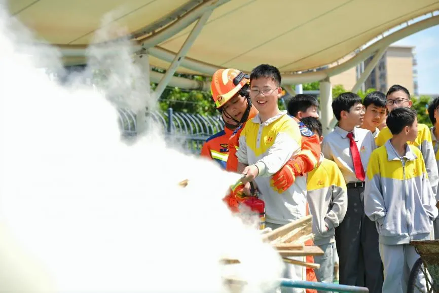 希望同学们要把安全意识刻在心里、把逃生的本领练在手上、把消防安全宣传在身边;同时希望学校要扛起主体责任、常态化排查隐患、把消防科普进校园抓长抓细,筑牢校园安全的防线。