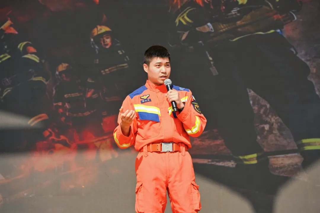 活动设置“蓝老师开讲啦”环节。花都区消防救援局消防宣传员郭文康结合自身参与消防救援的切身案例,为全体师生上了一堂精彩的消防安全普及宣传教育课。