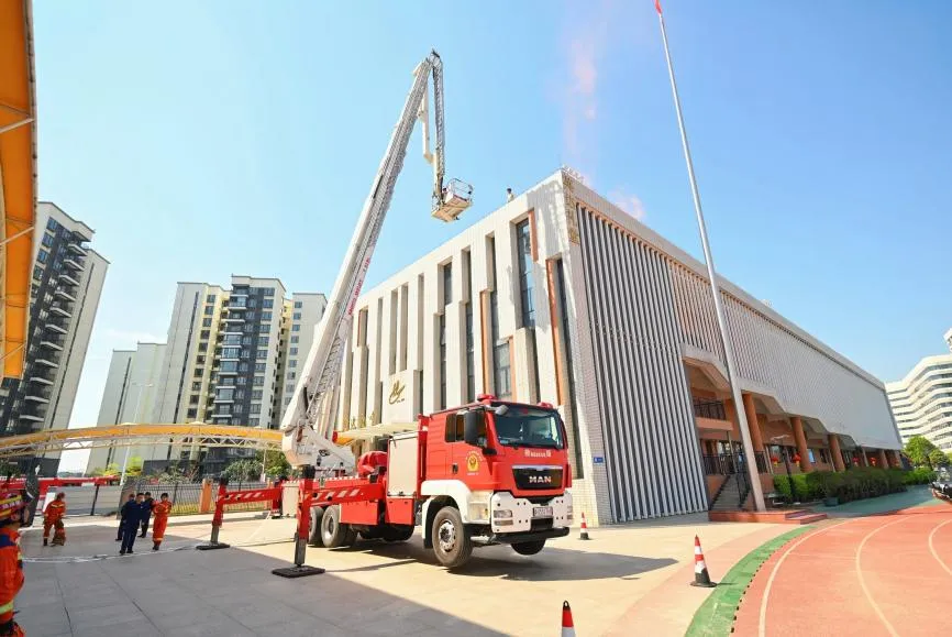 新学期,新气象。安全永远是第一位。校园人员集中,任何一点小小的疏忽,都可能带来安全隐患。今天云梯救援、灭火体验、搜救犬展示、逃生自救等沉浸式的学习演练,就是要把消防知识讲得通俗、学得明白、练得扎实。
