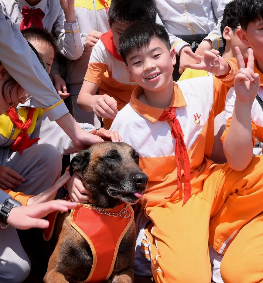 “摸了摸搜救犬,瞬间觉得‘消防救援’不再遥远,而是有这些可爱的‘小伙伴’和勇敢的消防叔叔一起尽在眼前守护我们的安全。”