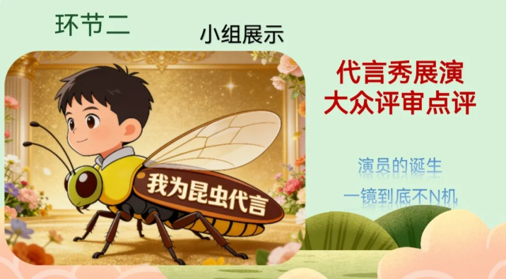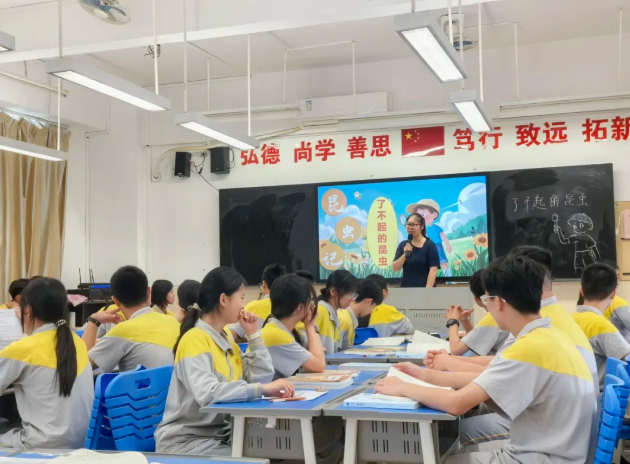 《昆虫记》名著同课异构主打趣味与项目化设计。梁老师以封面竞选为情境,让同学们通过抢答、展演感受昆虫特质,树立敬畏生命意识并衔接中考。