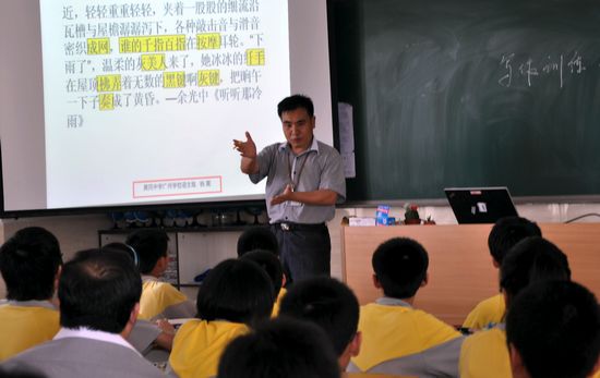 5月10日下午,花都区直属学校初中语文教师40多人,在区教育局教研室组织下,来我校开展初中语文“作文教学专题研讨”活动。 下午第一节课,各位老师走进七年级(8)班,观摩了我校杨震老师主讲的“寓情于景”的作文指导课。杨震老师采用了讲练结合的模式进行教学。他充分利用语文教材中精彩的写景片段,深入浅出地分析了景物描写在写作中的作用,让学生赏析的同时学习模仿。老师讲得生动形象,学生练得得法得心,课堂气氛热烈,精彩纷呈。 下午第二节课,老师们又走进七年级(9)班教室,共同观摩了由圆玄中学李老师主讲的写作指导课“人物的外貌描写”。与杨震老师相似,李老师也采用了先指导后练笔的教学模式。课堂上同学们的热情大方和积极配合让“新”老师如鱼得水,气氛十分和谐融洽。课的最后,李老师呈现出我国著名画家罗中立的作品《父亲》,让同学们对照油画作品进行“文字写生”训练。同学们的细心观察能力和扎实的写作功底,让在场的老师惊叹不已。 课后,在陈明星副校长的主持下,全体听课老师在二楼会议室,对两位老师的课堂进行了热烈而务实的研讨。我校语文特级教师万延龙老师对这两节课进行了精彩点评。 陈明星副校长作总结发言。陈校长首先欢迎各兄弟学校语文老师的光临,感谢花都区教育局教研室为我们提供这样的交流机会,之后对初中语文作文教学提出了很多建议和希望。