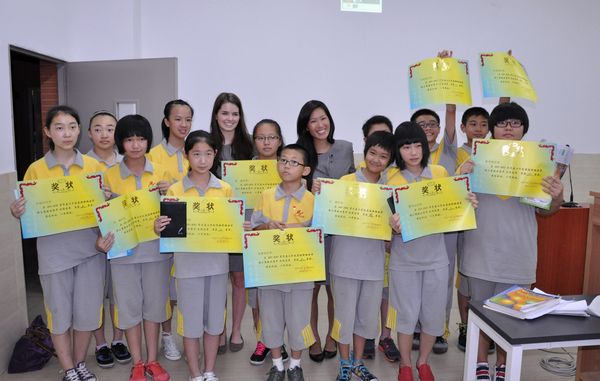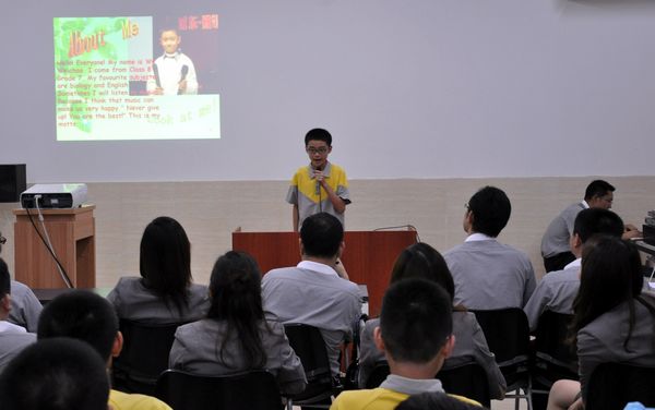 5月8日晚18:40分,备受广大师生和家长期待的新概念英语背诵比赛总决赛(初中场)终于拉开帷幕。决赛邀到的评委有:德育处杨文化副主任、赖家明老师、李旭东老师,以及两位外教Emily和Kaily。决赛分为三个环节:个人介绍、才艺表演和背诵篇目。 15位参赛选手,凭着各自实力,展开了激烈角逐,比赛过程精彩纷呈。爆满的教室,高涨的热情,比赛现场充满了选手们跃跃欲试、蓄势待发的气氛。台上同学,激情饱满、神采飞扬;台下观众时而全神贯注,时而掌声雷动;而候场选手们,嘴里念念有词,或紧张或淡定地准备着。最后,一号选手宁静同学获得特等奖佳绩,获得“‘概’帮帮主”的桂冠。 比赛结束后,我校英语特级教师陈明星副校长做了热情洋溢的点评和总结。 比赛让很多选手有了展现自我的机会和平台,同时也让同学们找到自己的差距和努力的方向。我们希望,通过本次新概念英语背诵大赛活动,让同学们提高学习英语的兴趣,进一步热爱英语学习,能够在各种场合大胆练习,灵活运用。相信我校学生在今后的各项英语展示活动中,一定会有更加突出的表现。