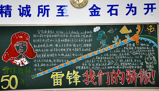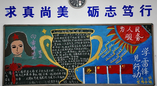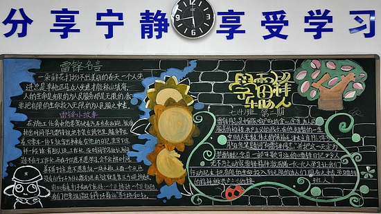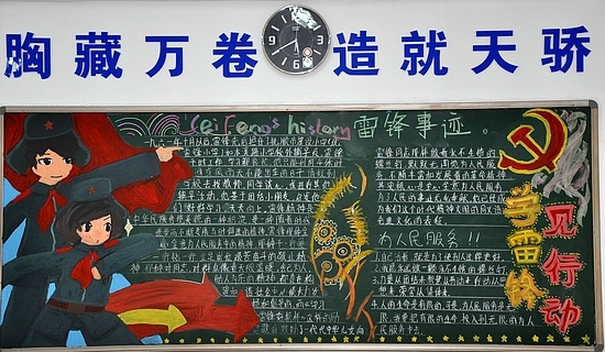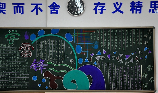 为弘扬民族传统美德,积极传承雷锋精神,同时也为了加强校园文化建设,创建互助和谐的校园文明,提高学生的审美能力,德育处在制定和布置“学雷锋,做好事方案”中组织安排了“学雷锋,见行动”主题黑板报评比活动。 各班积极参与,以丰富多彩、图文并茂的形式在黑板报上展示了“学雷锋,见行动”等宣传内容。同学们把对雷锋的尊敬和怀念之情融入到了黑板报创作之中,板报内容有雷锋生平、雷锋的事迹、雷锋的钉子精神、雷锋的日记等,全面介绍了雷锋全心全意为人民服务的品质,使同学们深刻体会到了雷锋精神的真实含义。 此次“学雷锋,见行动”主题黑板报评比活动,是大力宣传雷锋事迹、学习雷锋精神的一项有力举措。3月22日德育处组织各班宣传委员对黑板报进行了认真检查、评比,评选出初中组8名,高中组3名共11个获奖班级。 图为“学雷锋,见行动”黑板报部分获奖作品。