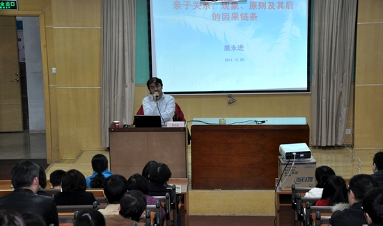 欢度圣诞,喜迎新年。借着这欢乐的气氛,我们有幸邀请到著名教育学者扈永进老师,加入我校家教论坛。12月25日下午,扈老师为我们送上了一场主题为“亲子关系:现象、原则及因果”的讲座。 扈老师在两个多小时的时间里,详细地阐释了亲子之间复杂的关系链条。他以清晰的思路将亲子关系层层拆解,给在场的家长们带来很大启发。扈老师提到,传统的家庭教育方式往往易让孩子产生出自我愧疚感,并以此作为教育孩子的目的。然而,孩子心中愧疚感的长期积累,往往会演变成内心负面情绪的间接动因,甚至有可能导致其人格的扭曲。 父母在家庭教育过程中,要学会抓住教育的契机。而如何来抓住这契机?重要的途径是理解。理解孩子的思想,理解他们行为背后的因果链条,深入发掘产生该行为的心理机制。我们不能停留于事物表面,要分析孩子内心世界的丰富性和偶在性,从源头入手,才能真正解决问题。这样的教育,才是正确的、有效的教育。 一个身心健康的孩子,在他的一生中将会拥有无数次机会,而失去身心健康,他就失去了一切。扈老师指出,一个身心健康的孩子必须以和谐、健康的亲子关系为依托。每个孩子的父母在他生命中毋庸置疑地扮演者最为重要的角色,只有当父母把孩子放到与自己平等的地位上,并为他提供身体和心理的双重安全感保障时,孩子才可能(也必然会)产生出学习的愿望。所以,家庭应关注的,不应该仅仅是教育本身,更重要的问题还在教育之外。 从孩子的童年时期,乃至其今后的一生中,培养出一种有助于他自由思考和自主行动的判断力,为其提供充分的身心安全感,是他人际关系和谐的重要保障。在安全和谐的人际环境中,孩子才会健康,也才能得到更好的发展。 一个人今天的状态,绝大多数都可溯源于其幼儿、少年时期的家庭环境及教育。因此,每一位父母在对孩子进行教育之前,首先需要认真回顾自己的教育历程,把自己的思维清理一遍,以客观、正确的教育观去培养“纯洁”的孩子。优秀的父母总是让自己的孩子有勇气去正视自己的情感、勇于表达内心的痛苦和困惑。只有这样,我们才有机会培养出拥有深邃思维跨度、快捷思维速度和严谨思维方式的聪明孩子。 讲座的时间很快结束,到场的家长均听得意犹未尽,演讲结束后仍将扈老师团团围住,就自身家庭教育中的困惑跟扈老师探讨。 扈老师在会后说到,我们要做到的不仅仅是一次讲座,而是要通过讲座引起家长们的思考,思考如何正确、有效地开展家庭教育。 为此我们想,我校开展家教论坛的目的,能够给予家长的,主要不是一个个问题的答案,更多的应该是激发起我们的家长,以及整个社会,面对如此严肃而紧迫问题的一个个问号。 (文/郭璐)