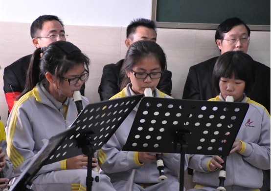12月10日上午,音乐教师张森林执教的《二声部教学——美丽的神话》,拉开了此次大赛的序幕。他的整个课堂教学过程组织有序,音乐氛围浓郁,既有学生们的集体竖笛演奏,又有分声部演奏及竖笛与色彩乐器的搭配,听课的教师都被学生们入情入境的演奏感染着。这样的课堂不仅体现了我校教师的个人业务水平和素养,更体现了学校注重对学生艺术发展力的培养,充分发挥了学生在课堂上的积极性和主动性。