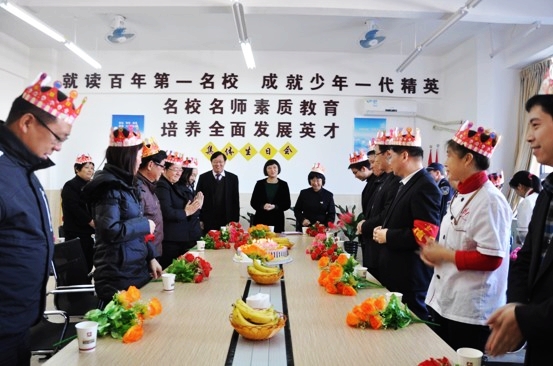 生日会在一片欢快的歌声中拉开帷幕,首先工会主席同时也是寿星的江楚桥副校长宣读集体生日寿星名单,使不同岗位上的寿星相互认识,促进交流;随后工会委员和生活老师们依次献上生日帽和鲜花,并祝各位寿星生日快乐,身体健康,工作顺利!同为寿星的范小星执行校长和梁润佳董事长向寿星们表达了衷心的祝福和热情、贴心的问候,使大家倍感室内暖意融融。大家一起分享着蛋糕,一起分享着喜悦与快乐、分享着温馨和感动!寿星代表万延龙、张瑞芬、张鹏老师都纷纷发表生日感言,感谢董事会、校长室和工会对员工付出的肯定、感谢领导和同事的深切关心、感受品牌扩大所带来的正能量!