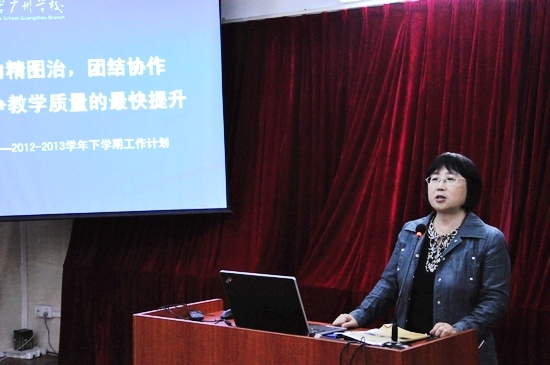 范小星执行校长围绕我校新学期的工作计划做了“励精图治,团结协作,力争教育教学质量的快速提升”的主题报告。范校长指出,学校站在“2013——教学提升年”的起点,各方面条件明显优于去年。同时也面临着许多新的考验。为此,范校长从管理、德育、教学、服务等方面对本学期工作进行了全面布置,并对高中部、初中部两个部门提出了明确的目标要求。