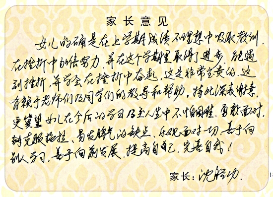 编者按:学校招办的同事们发现,越来越多的家长来电反映,他们听在黄广上学的亲朋好友介绍学校非常好,故而很感兴趣地咨询招生详情。孩子们在这里上学都有哪些变化呢?我们来看看寒假期间,家长在学生素质报告单中的反馈。