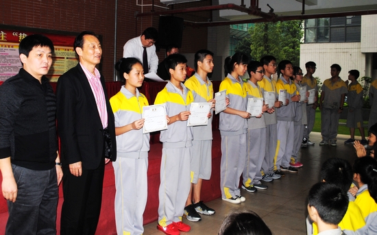 最后,在热烈地掌声中叶主任宣读了年级表彰决定,由陈校长、蒋主任、朱主任为月考总分前100名、语数外物政各学科前10名,共157名获奖同学颁发了获奖证书。这时,全场掌声雷动,经久不息,这是同学们发自内心的对获奖同学真诚的祝贺,更是在为自己受到的鼓舞和鞭策喝彩!