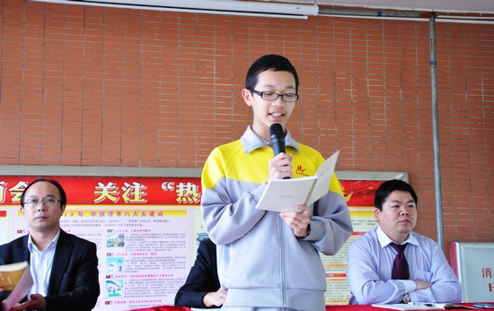 接着由六班的陈乔伊和十班的张松鹤两位同学作学习经验介绍。他们的讲话让同学们真正明白了广州市黄广中学,跑得快,睡得香,考得赢”的教育宗旨。刘同荣老师就语文学习的意义、提高语文素养的方法和提高语文成绩三个方面作了精彩的演讲。
