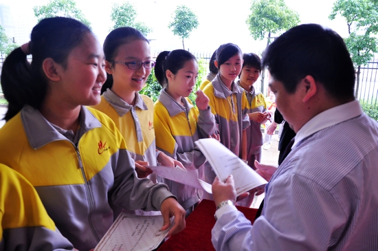 最后卢主任宣布了本次月考中年级总分前100名、语、数、英、政四科年级前10名的学生名单,由陈副校长和蒋主任为学生颁奖并合影留念,两位领导也分别对全体同学提出了殷切的期望,大会在热烈的掌声中画上了圆满的句号。