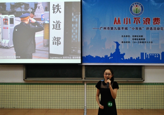 4月16日,由花都区妇联和花都区教育局联合举办的“从小不浪费——广州市第九届羊城‘小市长’评选活动花都区预选赛”在骏威小学拉开帷幕,活动评选过程分为“看图说事”、“特长展示”、“无领导小组讨论”三个环节,我校李欣微同学在17位选手中脱颖而出,获评为花都区“绿色之星”,并将晋级广州市第九届羊城“小市长”评选复赛。黄维华老师荣获优秀指导老师奖。