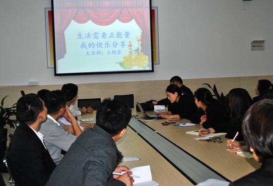凌俊老师跟大家分享了“皮革马利翁效应”的由来、含义及其在教育中的应用,使大家明白了对他人传递积极的期望,会使人更容易进步,反之则会使人自暴自弃。王艳芬老师分享的题目是“生活需要正能量”,她通过一篇形象生动的哲理漫画让大家更懂得了“活在当下,知足常乐”的真谛,人的心就像一个容器,烦恼装得太多,快乐就没有空间了。两位老师都给我们传递这样一个信息——只有身体健康、心情愉快,才能更好地工作!