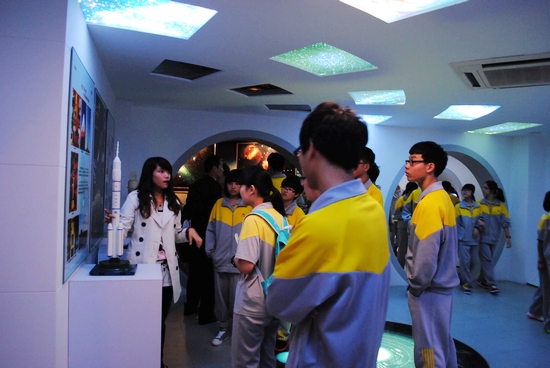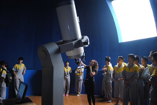 最后,解说员将我们带到顶楼领略期待已久的镇站之宝——天文望远镜。解说员详细地介绍了天文望远镜的相关知识,使同学们收获颇多。