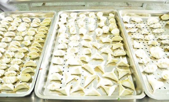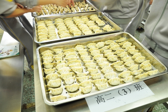 随着比赛哨声响起,各班参赛的选手们开始有条不紊地忙碌起来,调料、放馅、包皮……经过一系列复杂的工序,一个个形态各异、创意十足的饺子便在同学们的巧手中诞生了。整个比赛现场热闹而又温馨。经过激烈的角逐,最终,高一(5)班、高二(3)班和高二(5)班凭借精美的水饺造型获得一等奖。