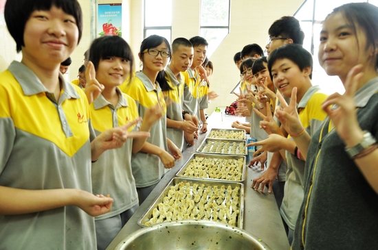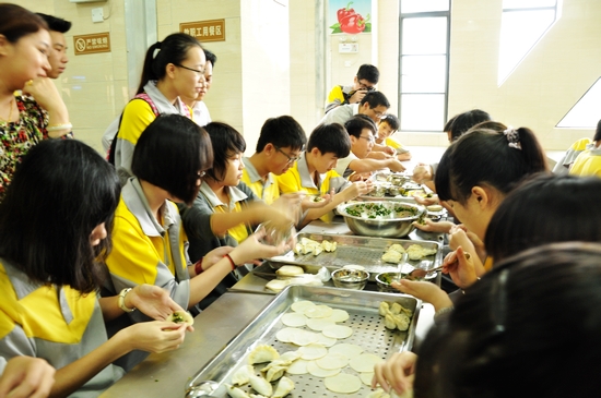5月4日下午,我校高中部的同学们在一楼餐厅举行了一场别开生面的包饺子比赛。