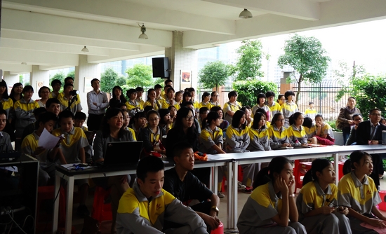 5月4日下午,学校七八年级师生、学校领导以及学校其他工作人员,一起在学校一栋架空层共同参加英语才艺展演活动。